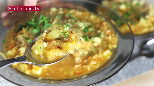 Zimowy kapuśniak z kaszą jaglaną, soczewicą i ziemniakami –WARZYWA