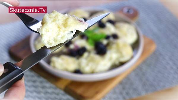 (Dlatego ważne, żeby woda się już mocno gotowała, dzięki czemu od razu utrzyma kształt ciasta wokół twarożkowej kuleczki).