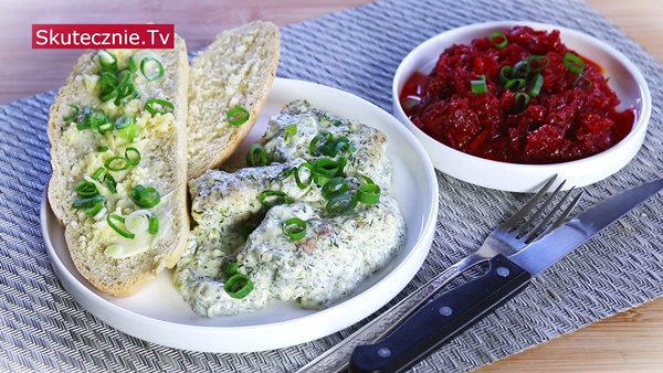 Delikatna ryba bez panierki, otulona sosem śmietanowo-koperkowym. Do tego ryż, ziemniaczki lub np. pieczywo czosnkowe, o którym za chwilę więcej w filmie. Albo kalafior czy brokuł na parze i pyszny, odżywczy obiad gotowy.